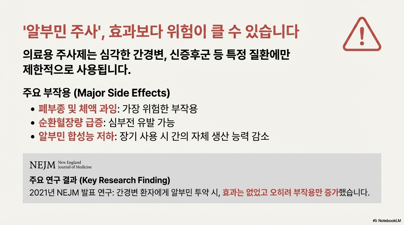 📌병원에서 사용하는 알부민 주사는 심각한 부작용이 있을 수 있어요.