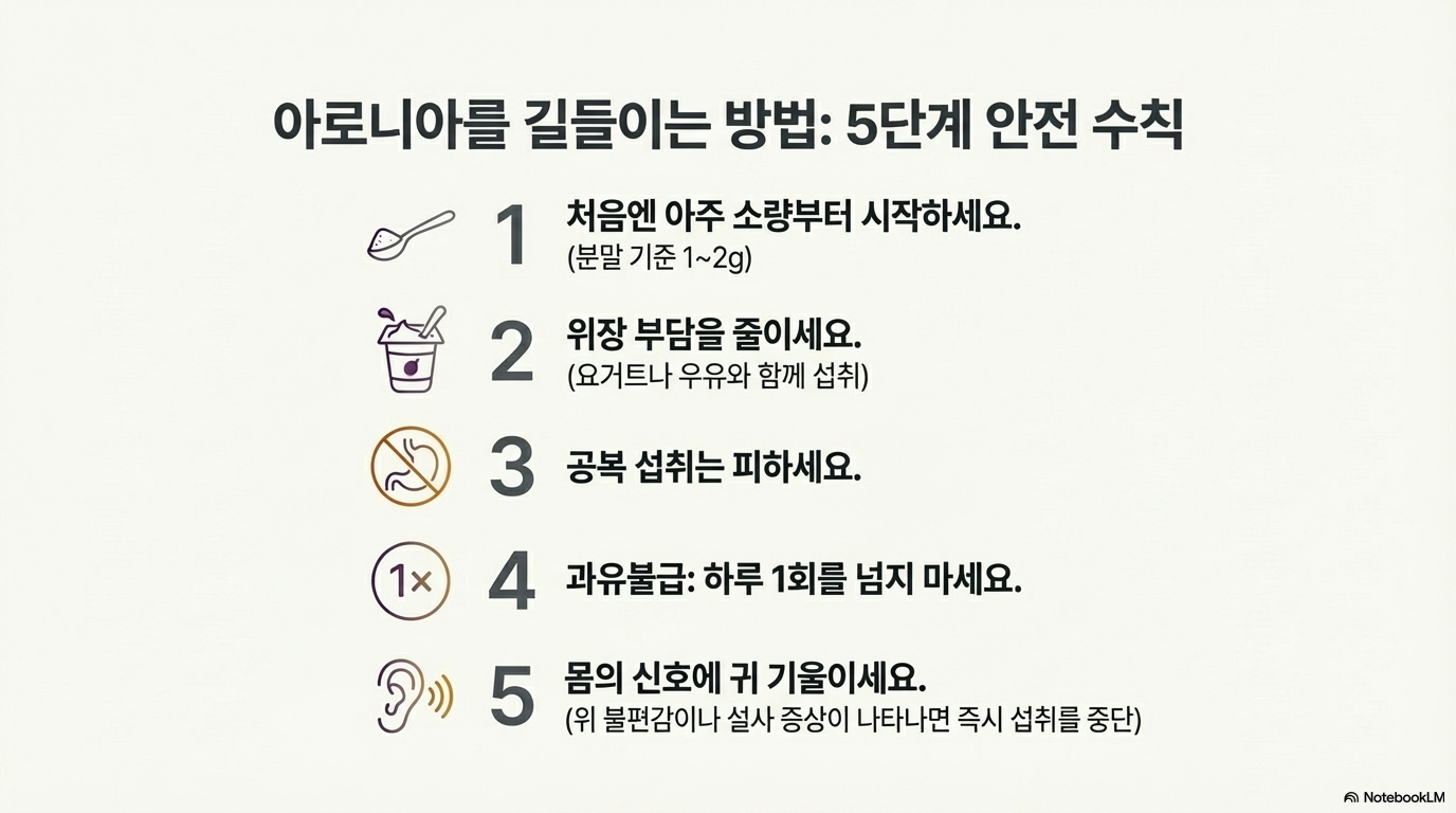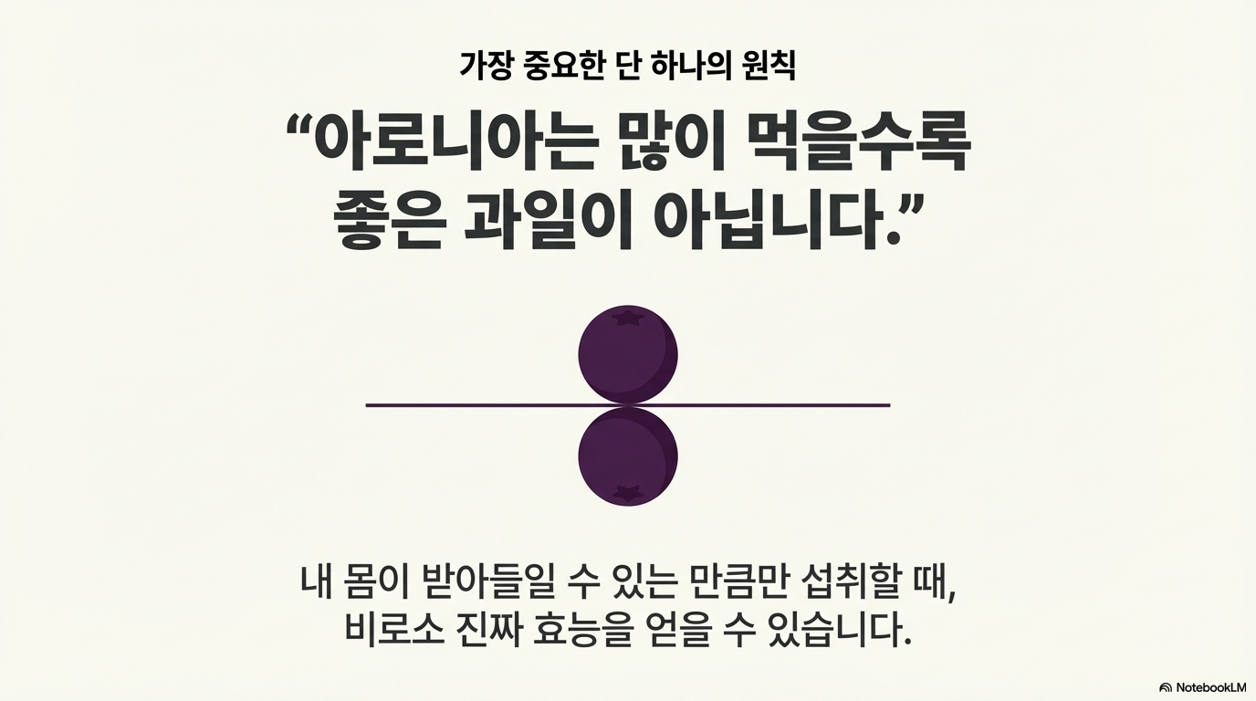 👉 아로니아는 많이 먹을수록 좋은 과일이 아닙니다. 내 몸이 받아들일 수 있는 만큼만 섭취할 때, 진짜 효능을 얻을 수 있습니다.
