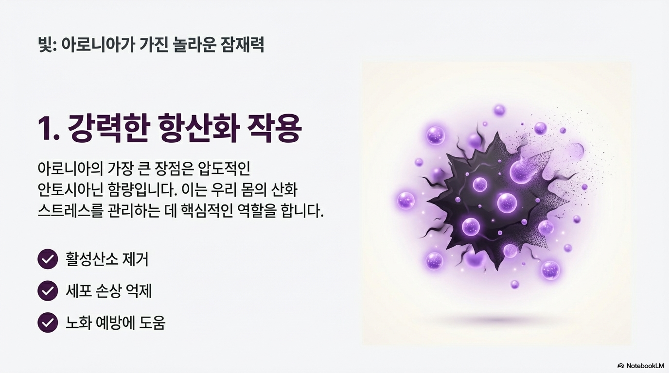 - 아로니아는 강력한 항산화, 눈 건강, 혈관 건강에 도움을 줄 수 있습니다.