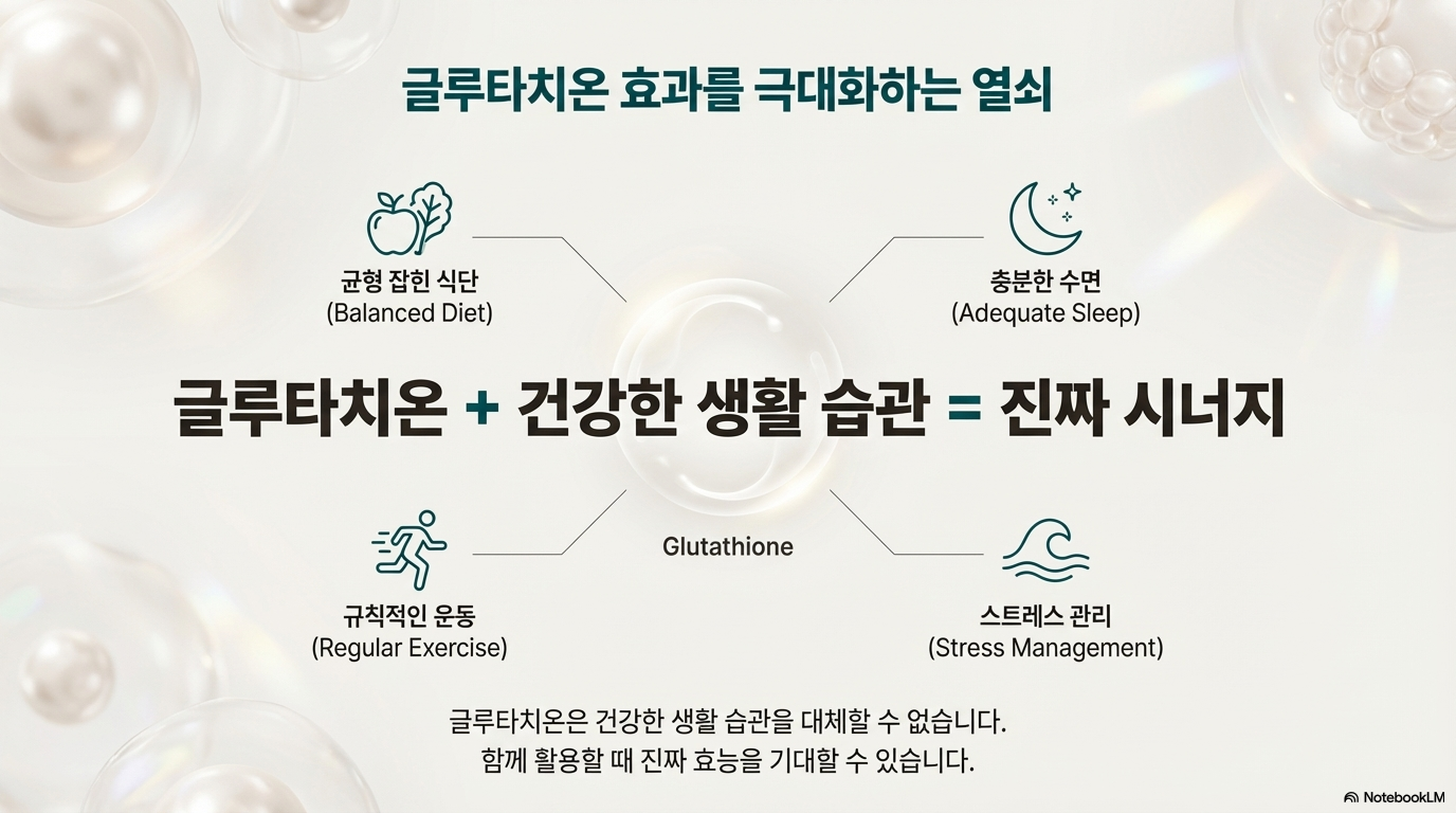 👉 글루타치온은 보조 역할이지 만병통치약이 아닙니다.