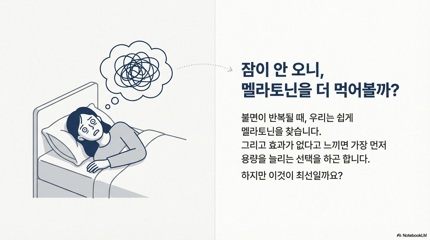 불면이 반복되면 멜라토닌을 찾게 됩니다. 하지만 타이밍과 용량을 잘못 잡으면 효과는 줄고 부작용만 늘어날 수 있습니다.