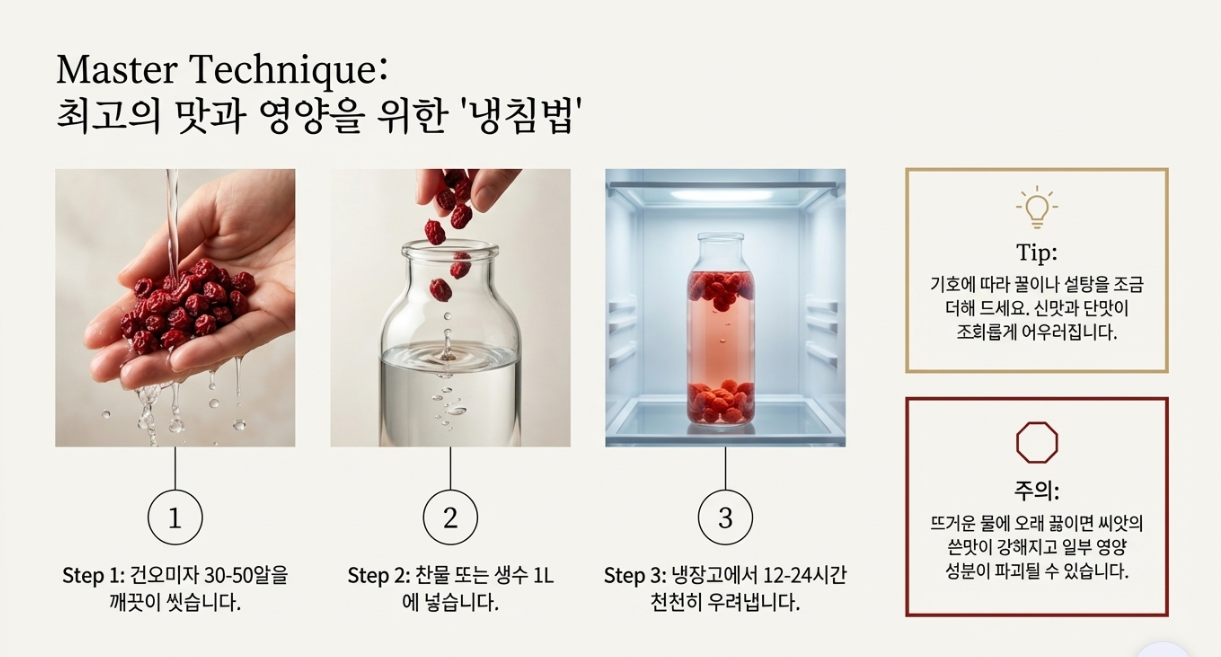 ✔️ 냉침 방식으로 오미자차 (12~24시간)